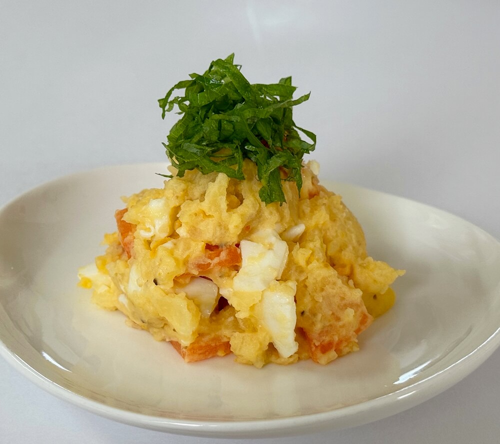 もう1品、茹でたジャガイモとニンジン・ゆで玉子に、マヨネーズ・西中州ドレッシングで和えた『簡単タラモサラダ』も作ってみました。